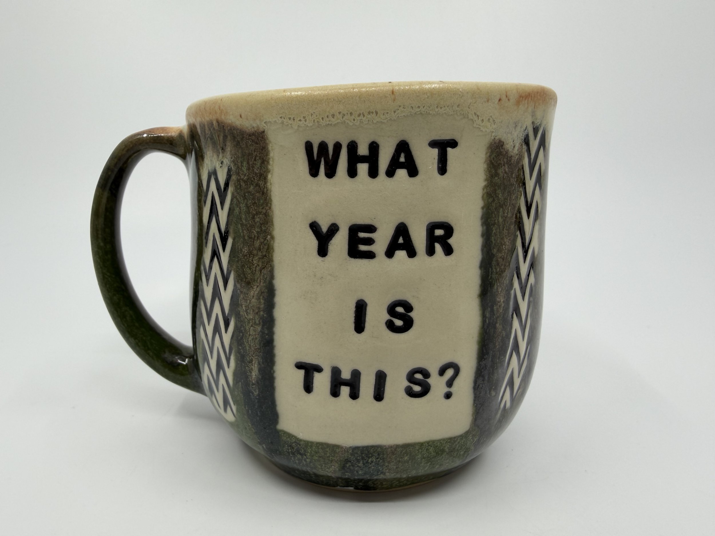 Available Pieces › What Year? Mug Image 1 of 4 Image 2 of 4 Image 3 of 4 Image 4 of 4 What Year? Mug $50.00 sold out Holds about 11 oz of liquid Sold Out Added! Holds about 11 oz of liquid