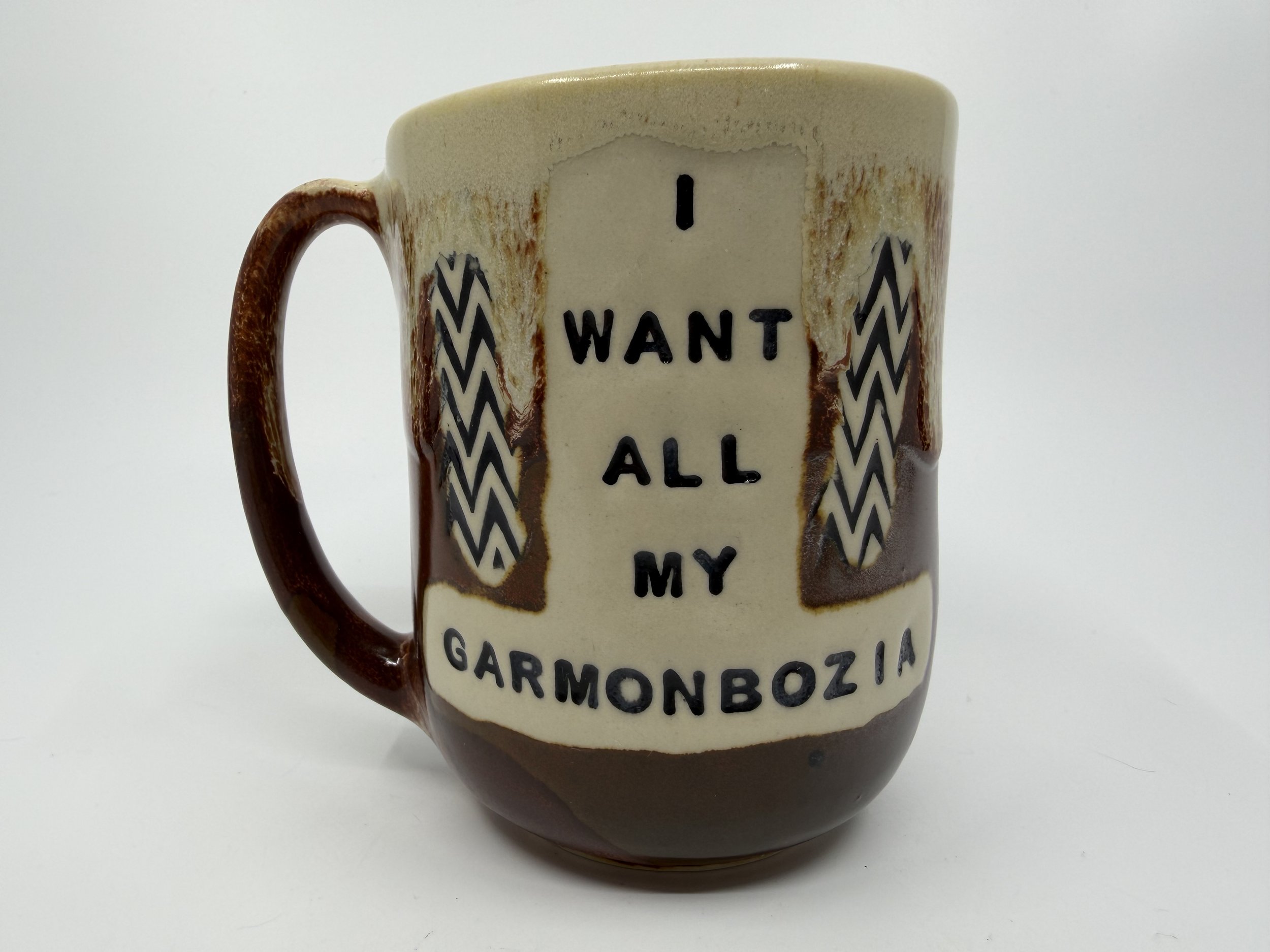 Available Pieces › Garmonbozia Mug Image 1 of 5 Image 2 of 5 Image 3 of 5 Image 4 of 5 Image 5 of 5 Garmonbozia Mug $50.00 Holds about 16 oz of liquid Purchase Added! Holds about 16 oz of liquid